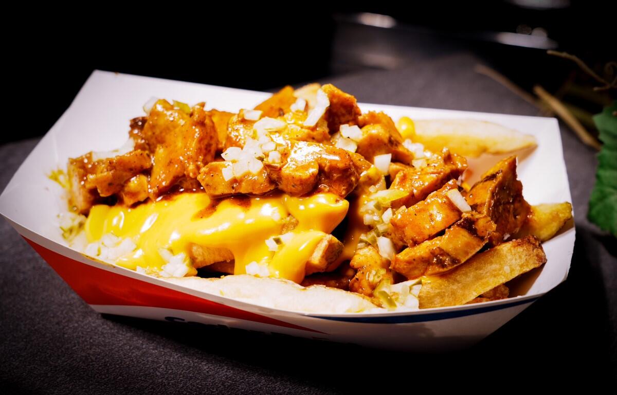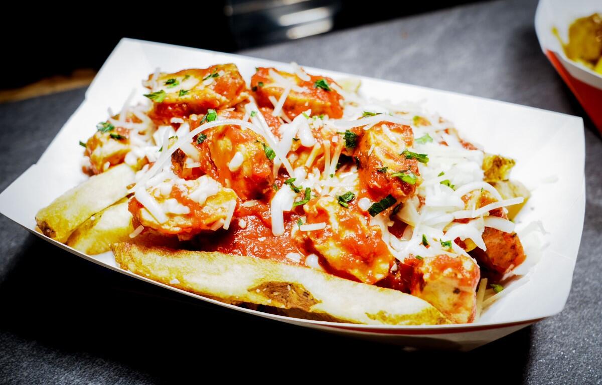 Over at Hot Potato, near Raptor, the offerings include Nashville Hot Fresh-Cut Fries with grilled Nashville hot chicken, cheese sauce, and pickles, and Chicken Parmesan Fresh-Cut Fries with grilled chicken, tomato sauce, mozzarella, and parmesan cheeses.