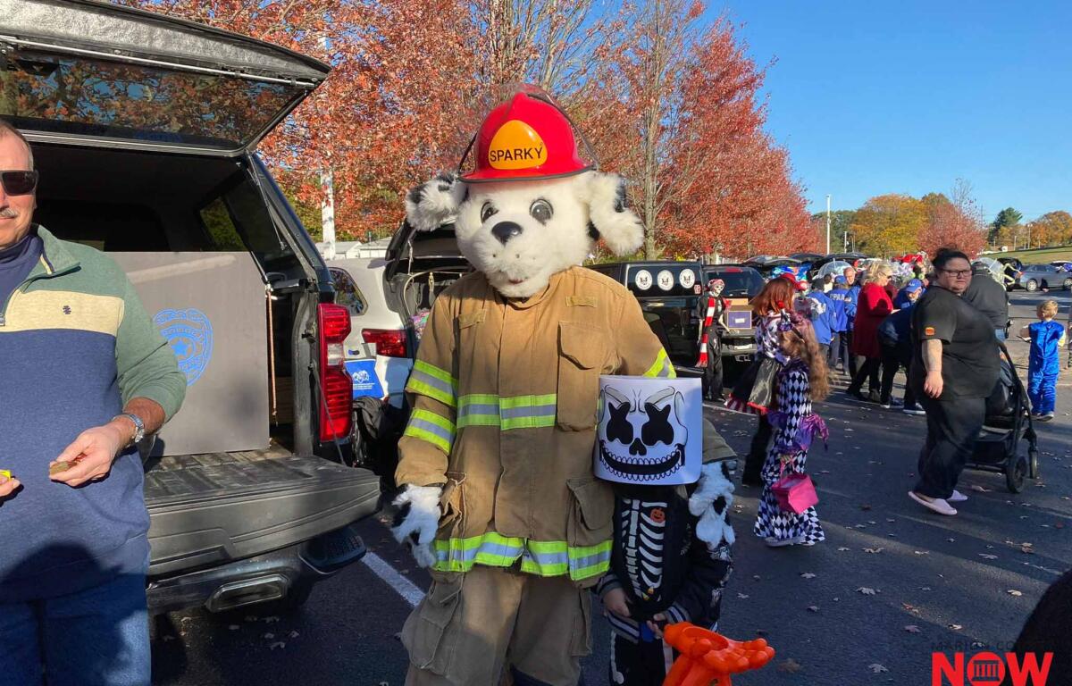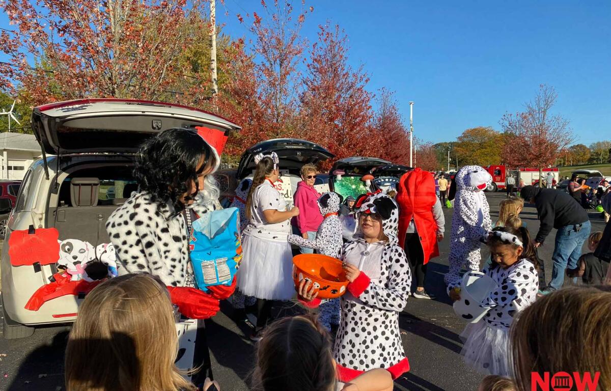 Cars lined the lot, each decorated with creativity and care. A “101 Dalmatians” theme drew plenty of attention as Cruella de Vil and a pack of playful pups handed out treats, their black-and-white spots standing out against the fall foliage. Nearby, Sparky the Fire Dog posed for photos with kids dressed as skeletons, superheroes, and princesses, spreading smiles and Halloween cheer.
